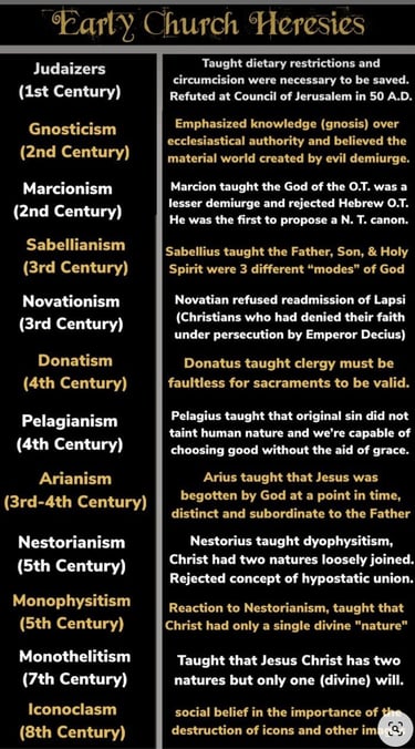 Let's look at some of the Early Heresies that developed in the days of the Apostles, and shortly afterwards. The beginnings of these heresies are alluded to in the Epistles John, Paul and Jude. Let's look at several of these places.