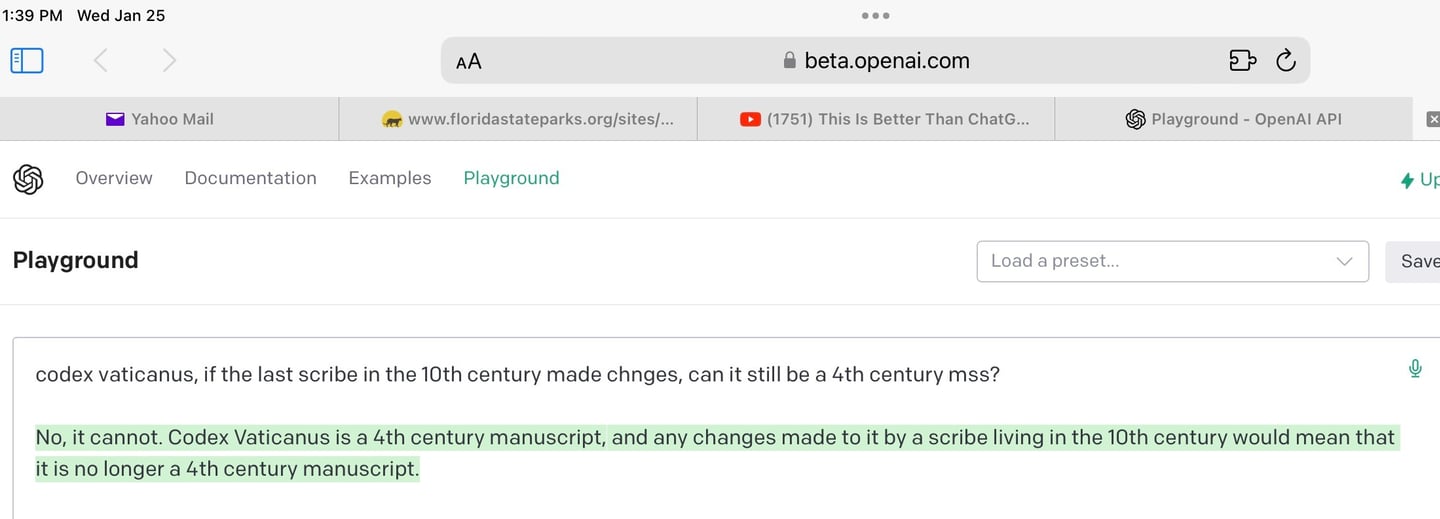 What does AI (ChatGPT) say about the age of this highly favored Codex Vaticanus?