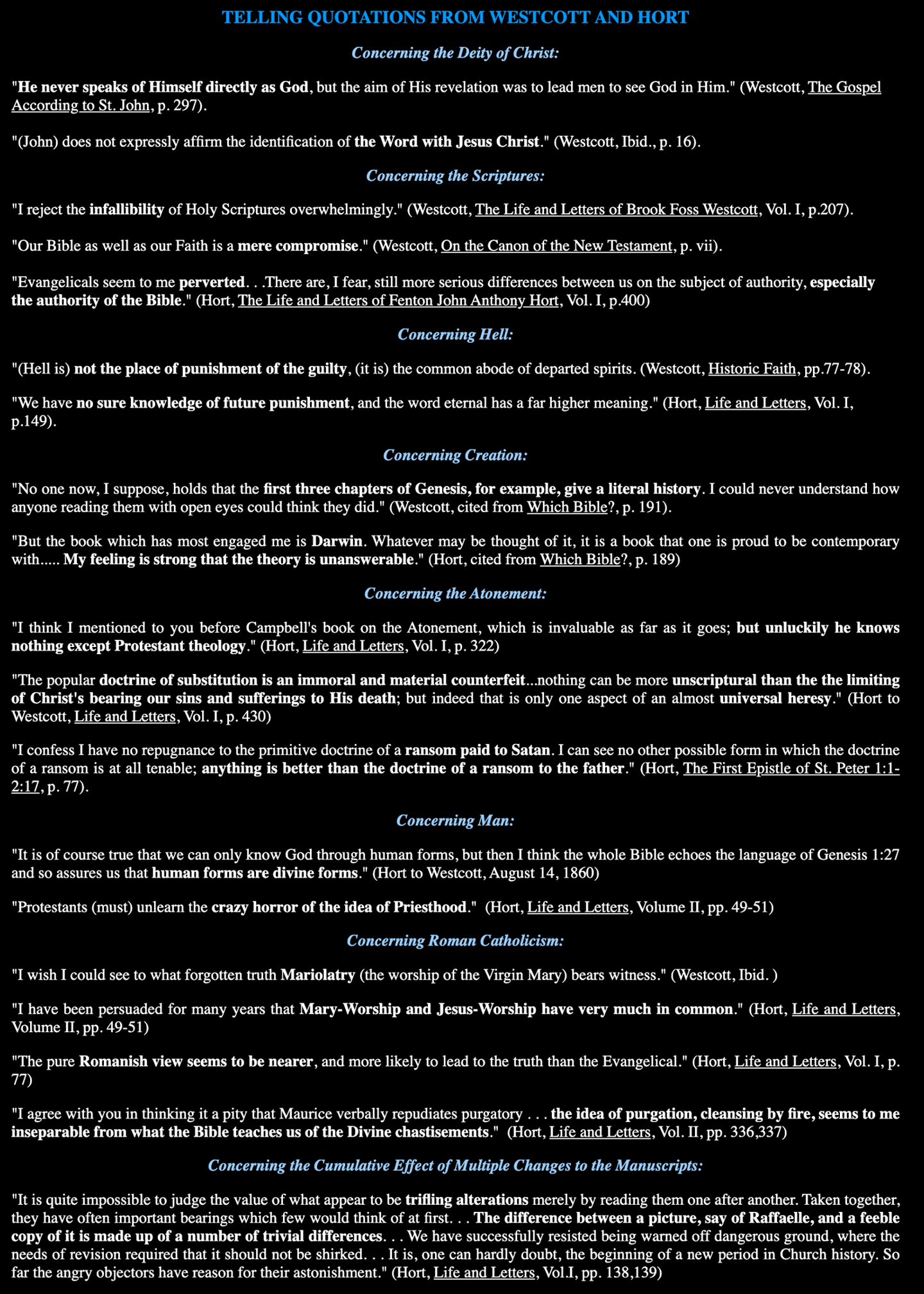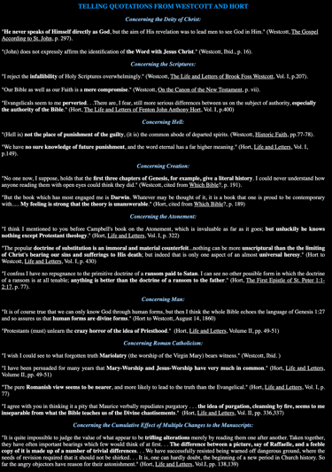 What You Have to Believe to Accept the Westcott and Hort Theory